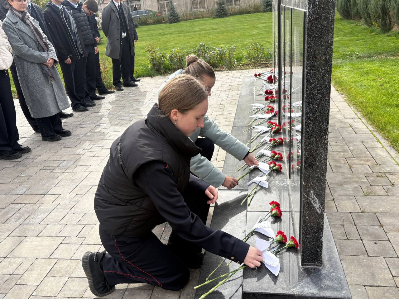 У памятника погибшим героям офицеры ведомства и кадеты профильного класса средней школы № 54 Советского района Волгограда возложили цветы и белые бумажные журавли в знак уважения и вечной признательности. Минутой молчания участники мероприятия почтили память всех, кто не вернулся с полей сражений, но чья отвага и любовь к Родине продолжают жить в каждом из нас.