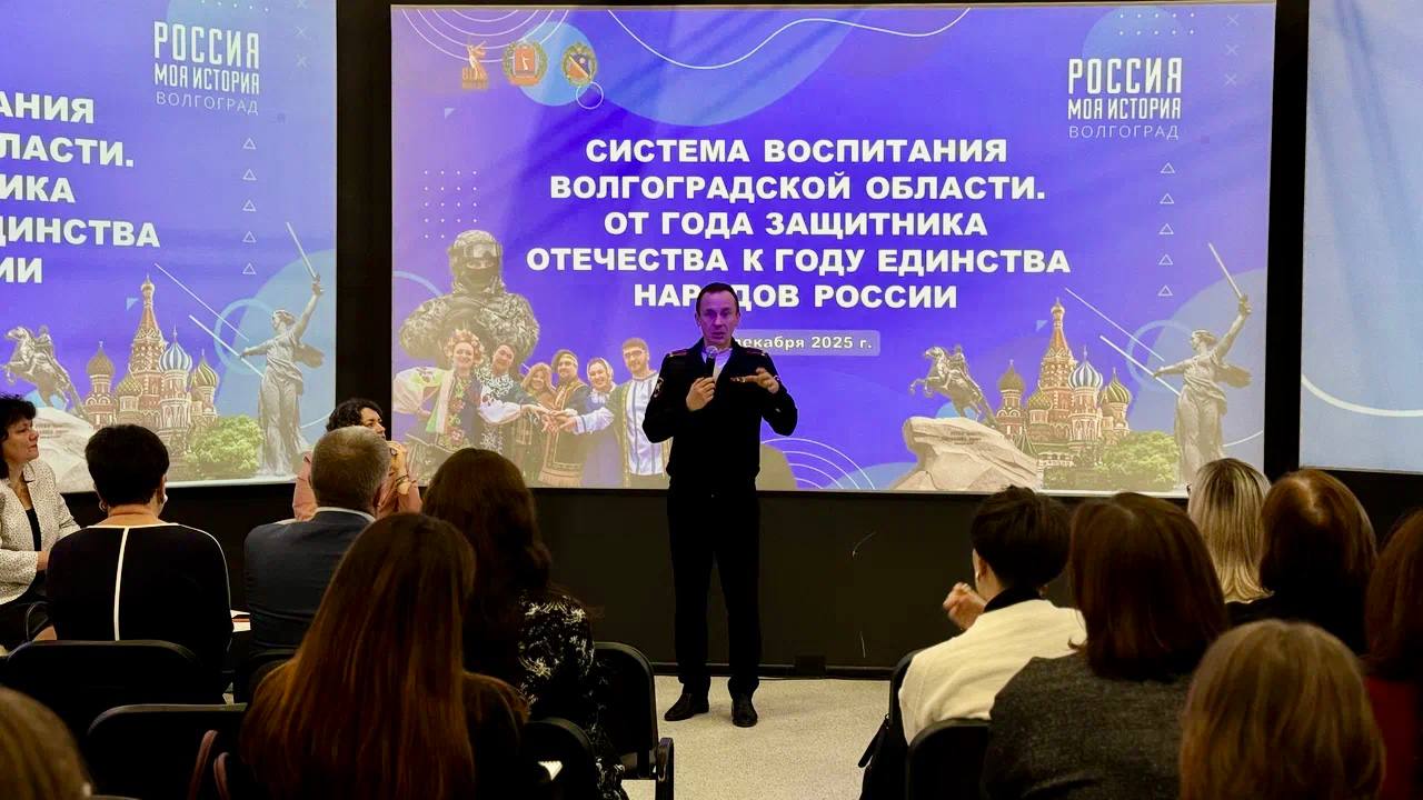 В минувший четверг в Волгограде прошла региональная конференция под названием «Система воспитания Волгоградской области. От года защитника Отечества к году единства народов России». В приняли участие руководители органов управления образованием муниципальных районов, ответственные за воспитательную работу в образовательных организациях; советники директоров по воспитанию, представители родительской общественности и сотрудники Волгоградской Госавтоинспекции.