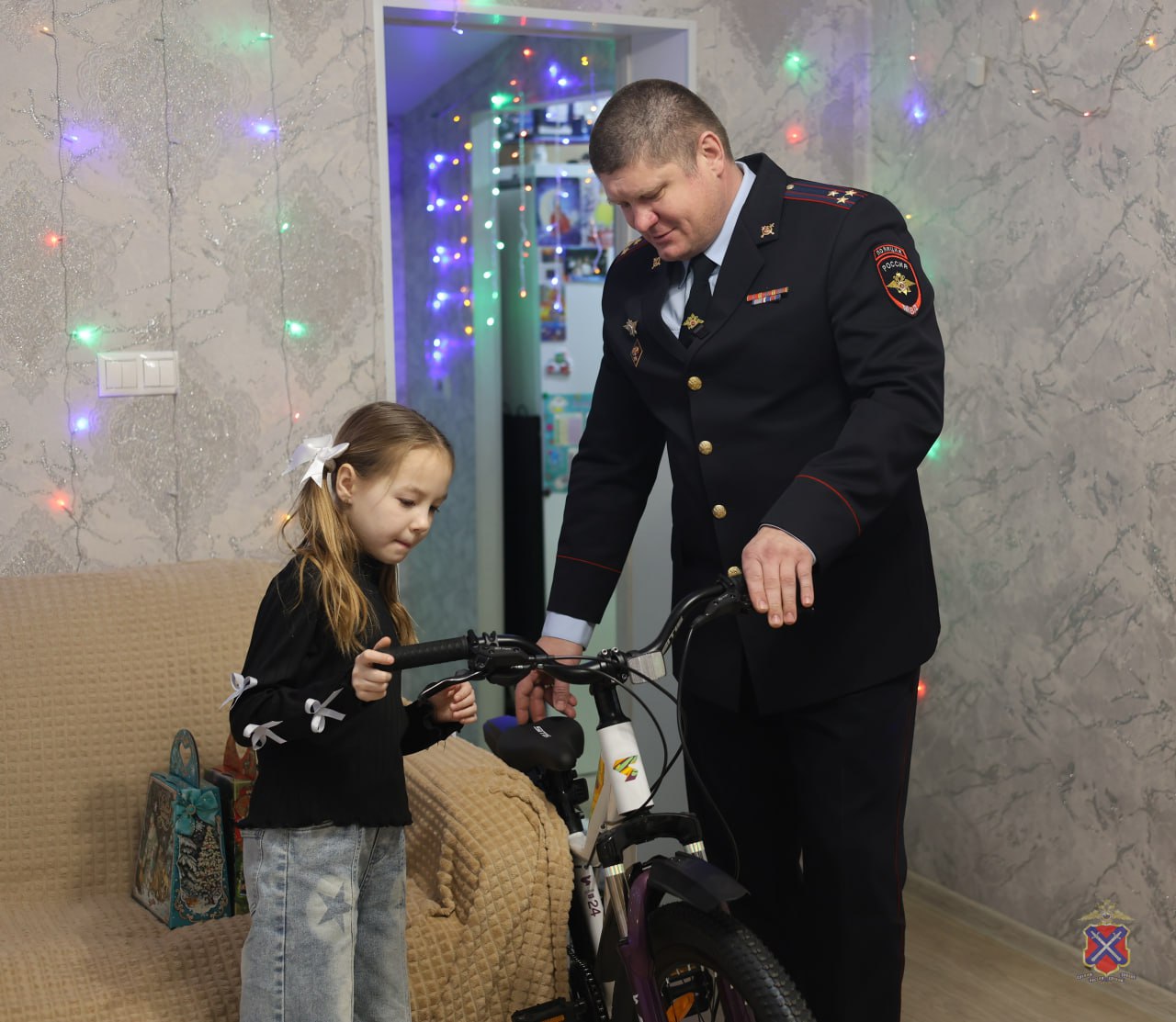 Волгоградские полицейские уже не первый год участвуют во Всероссийской акции «Ёлка желаний», исполняя мечты детей. В этом году они подарили велосипед 8-летней Есении Долматовой из Тракторозаводского района Волгограда, которая разместила своё желание на сайте ёлкажеланий.рф.