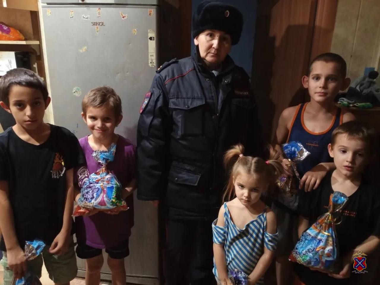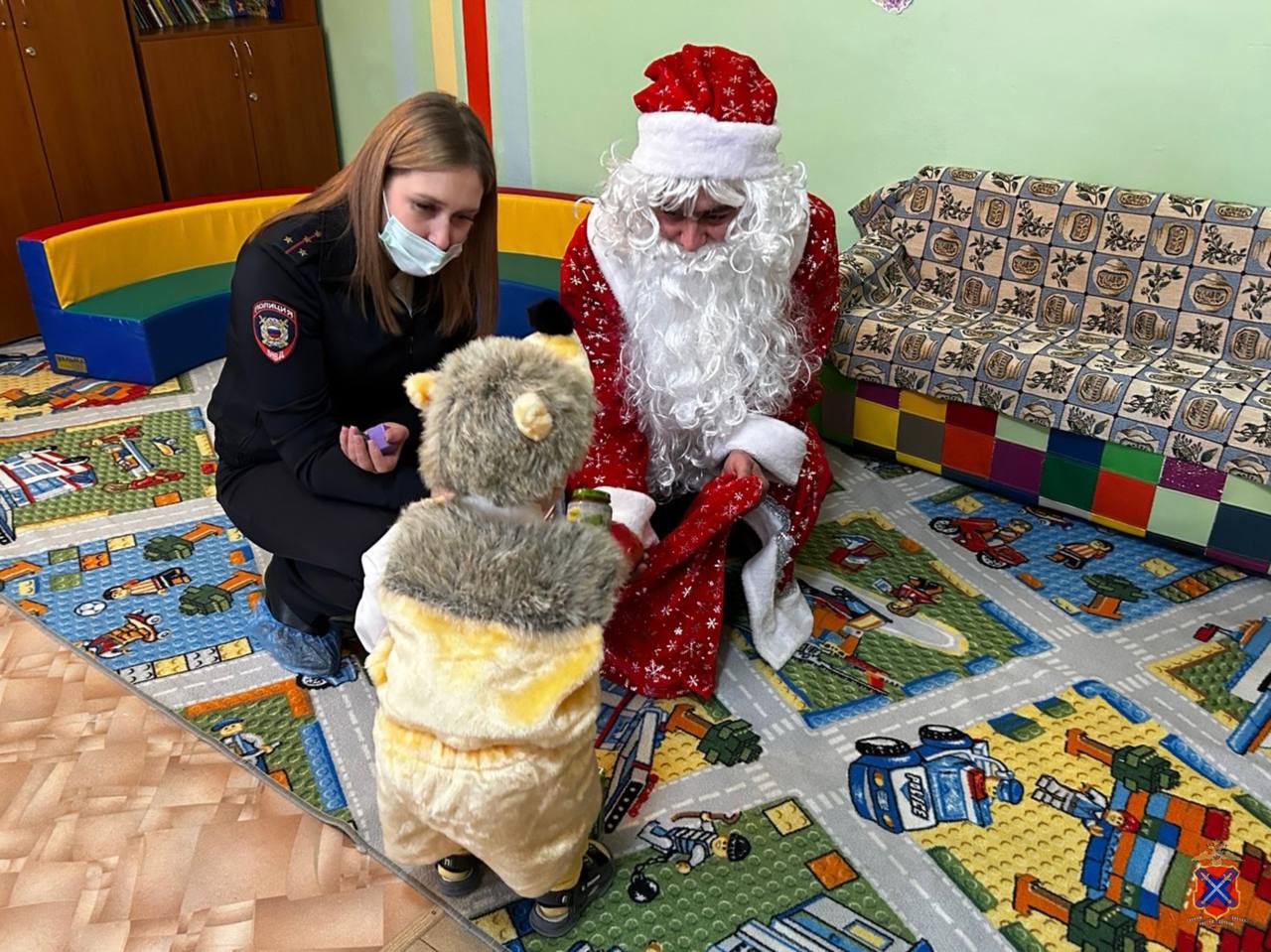 правоохранительных органов в костюмах Дед Мороза и Снегурочки, организовавших для них новогоднее представление с играми и конкурсами.