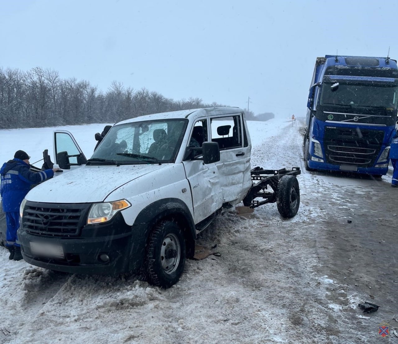 По предварительной информации, в 15-55 час. на 782 км ФАД Р-22 «Каспий» «Тамбов-Волгоград-Астрахань» водитель, управляя автомашиной «УАЗ», не убедился в безопасности при выполнении маневра разворота и совершил столкновение с грузовой автомашиной «Вольво» в сцепке с полуприцепом «Шмитц», двигавшейся прямо в попутном направлении. В результате ДТП водитель и два пассажира легкового автомобиля доставлены в медучреждение.