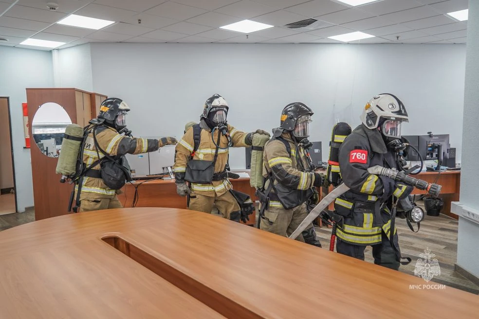 Согласно легенде учений, пожар возник в одном из офисных помещений на 25 этаже и угрожал распространиться на вышележащие этажи и смежные помещения, а значит действовать нужно было не только грамотно, но и быстро.