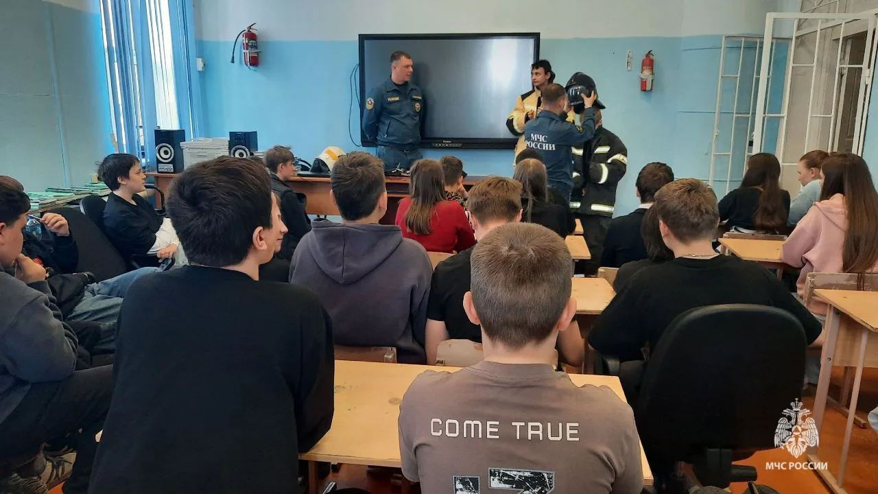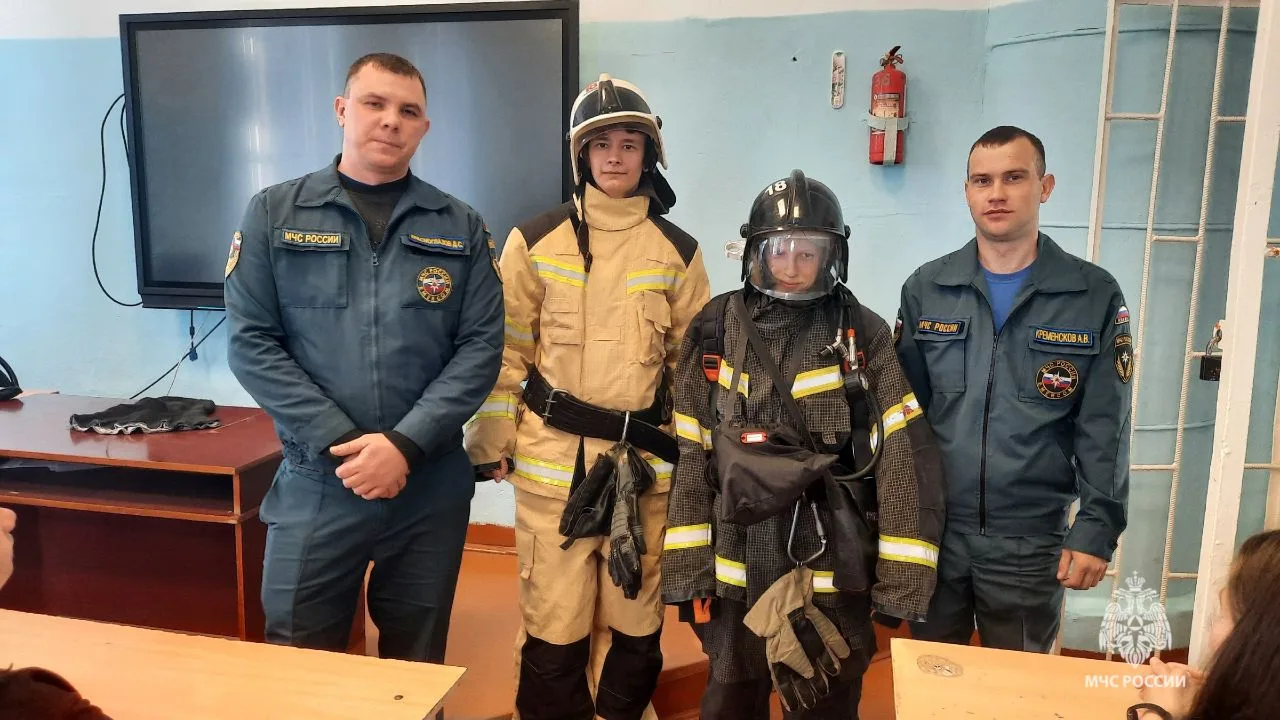 В ходе урока огнеборцы 18-й ПСЧ: