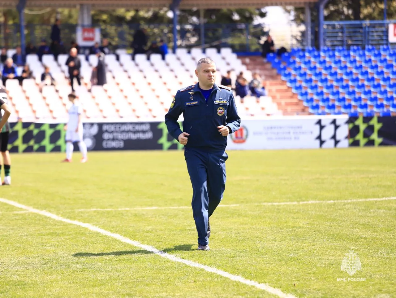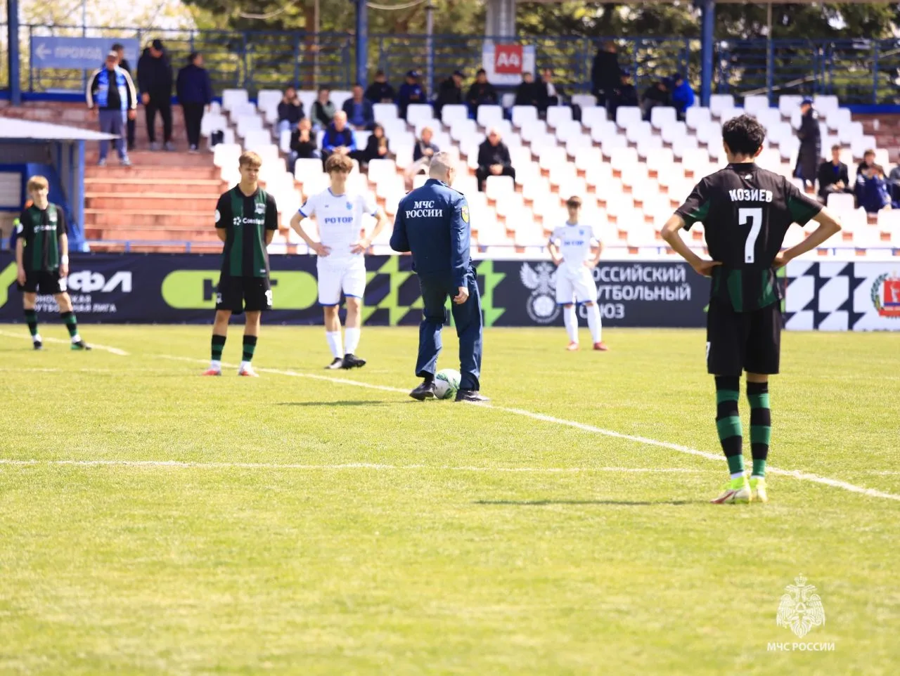Символический удар по мячу от сотрудника МЧС России