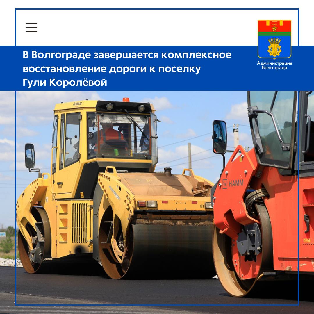 Работы по обновлению дорожного покрытия на дороге, ведущей в поселок Гули Королёвой в Советском районе Волгограда, завершает подрядная организация. На участке общей протяженностью 2,37 км вместо старого асфальта уложено два слоя нового асфальтобетонного покрытия.
