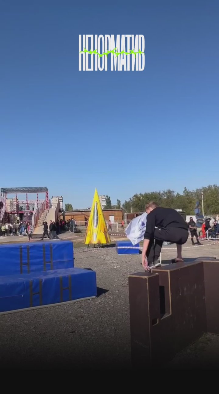 На площадке паркура участники показывают спидран и зрелищные