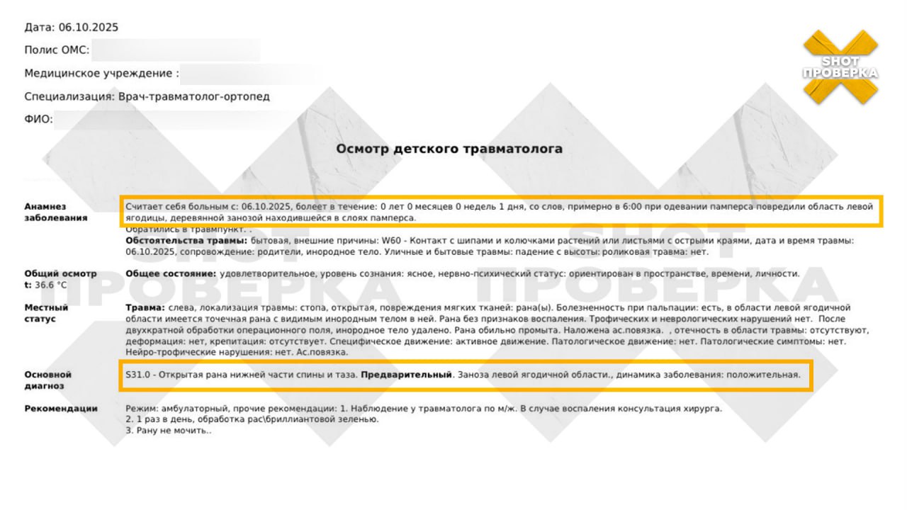 Родители обратились в травмпункт, где хирург вытащил занозу из ягодицы малыша. Врачи рекомендуют всегда прощупывать каждый подгузник перед использованием, а не только осматривать его визуально.