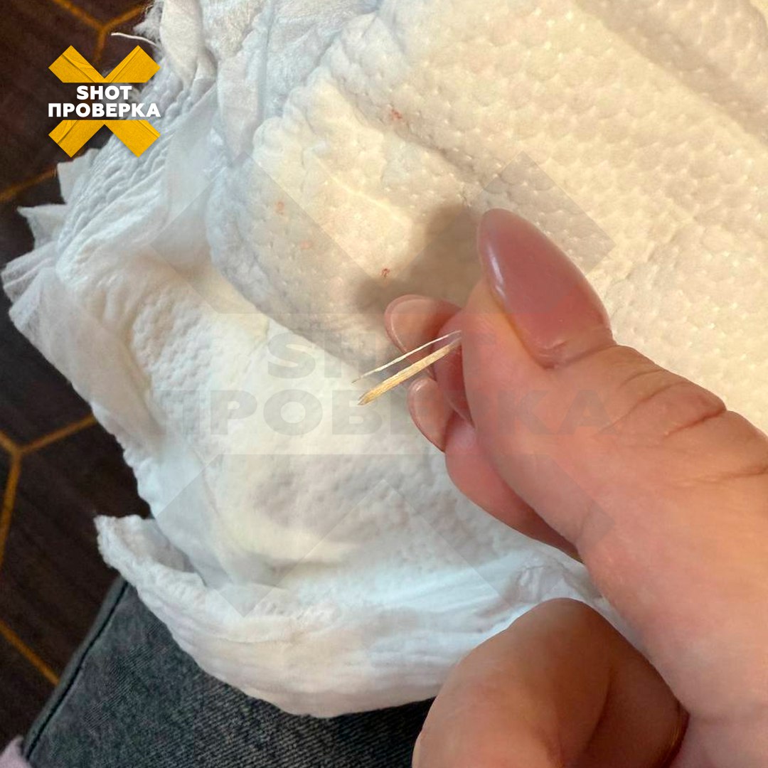 По данным SHOT ПРОВЕРКИ, девушка приобрела подгузники-трусики MANU в «Детском мире» на Волгоградском проспекте. Когда сняли памперс, мама нашла на теле ребёнка 1-сантиметровую занозу. Подозрения пали на памперсы — при прощупывании товара, по словам девушки, она обнаружила остатки щепок.