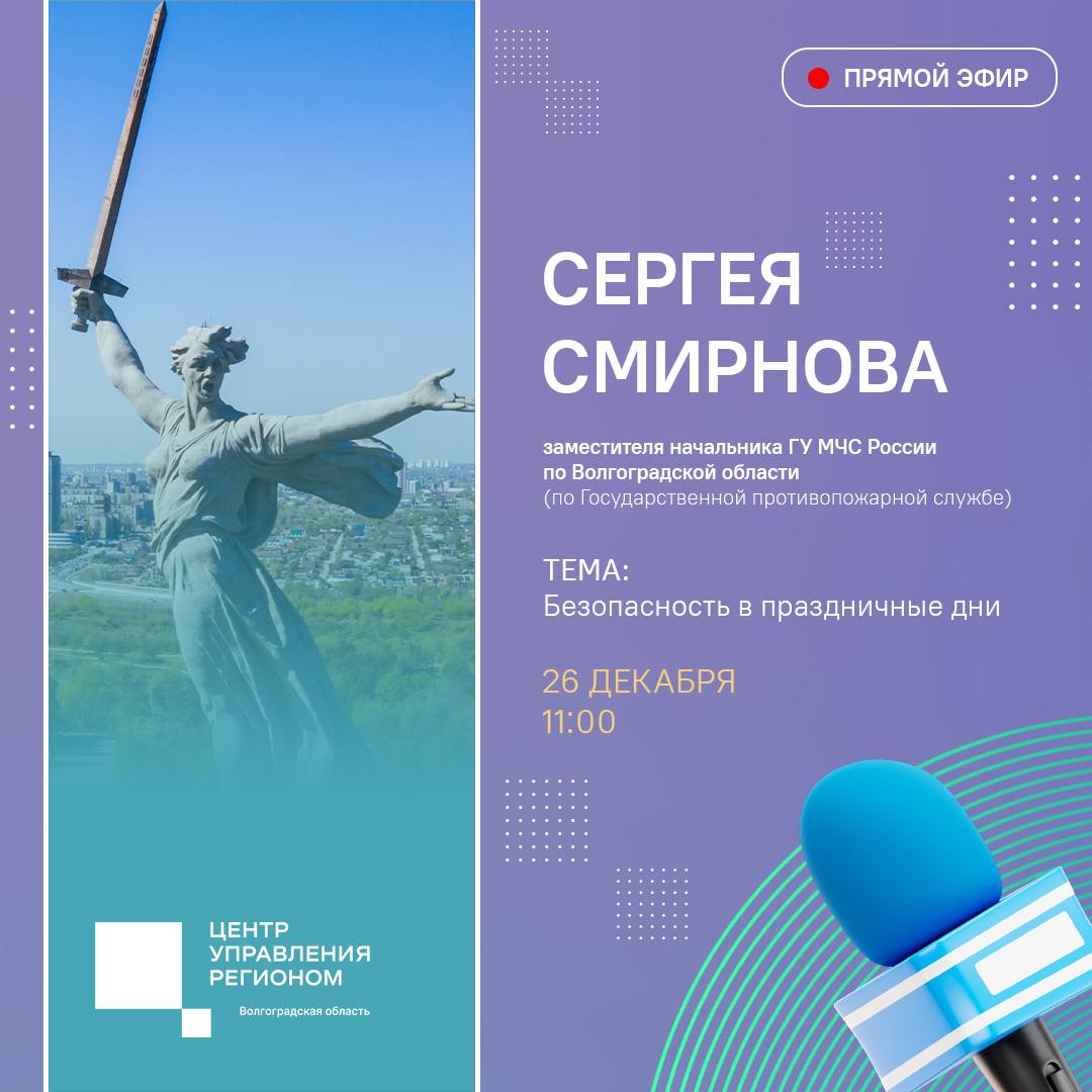 В студии ЦУР пройдет прямой эфир Сергея Александровича Смирнова, заместителя начальника ГУ МЧС России по Волгоградской области (по Государственной противопожарной службе).
