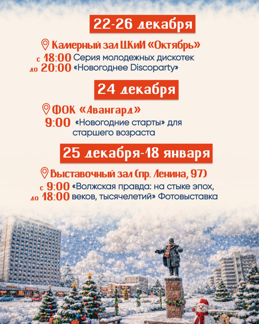 Пришло время праздничной магии! Мы собрали главные новогодние события декабря и января в Волжском