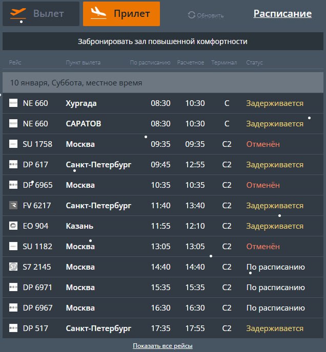 Ситуация в волгоградском аэропорту после снятия ограничений