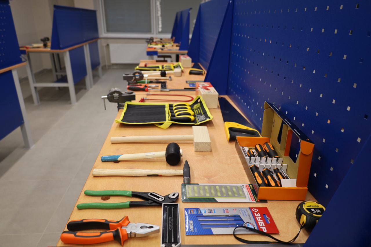 Теперь в классах есть легкие защитные костюмы Л-1, тренажеры-манекены для отработки сердечно-легочной реанимации, противогазы, а также ученические верстаки, манекены с подставками, швейные машины.