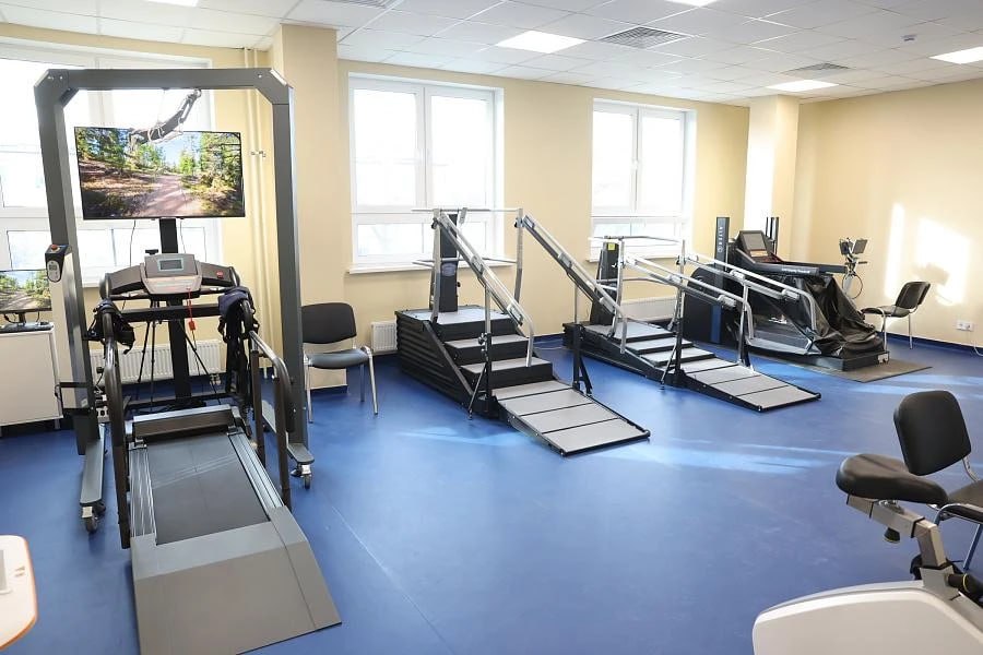 Для оказания помощи пациентам закуплены столы и кушетки для физиотерапии и массажа, аппараты для электромиостимуляции и гальванизации, ультрафиолетовые облучатели для фототерапии, лазерные и ультразвуковые терапевтические системы, тренажеры для восстановления ходьбы, велоэргометры, мобильные рамки для разгрузки веса при ходьбе, массажеры, системы подъема и перемещения, больничные кровати с электроприводом и другое.