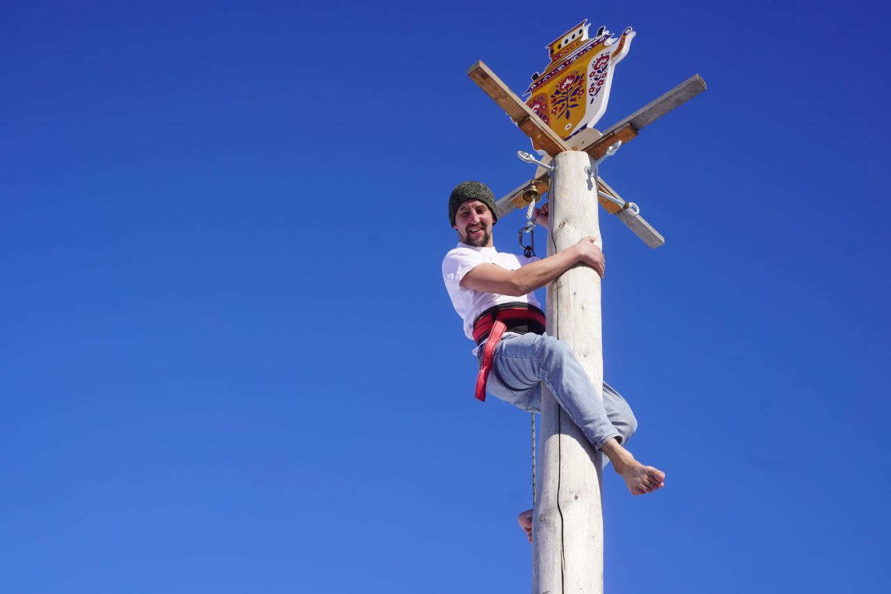 Волгоградец покорил масленичный столб в ЦПКиО за 9 секунд