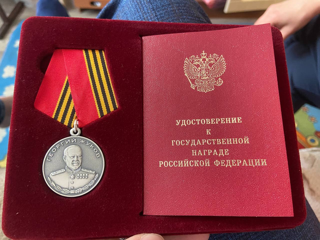 Супруг совершил подвиг, уведя мощь ударного дрона противника на себя. Удостоен медалью Г. К. Жукова. Такой медалью награждаются военнослужащие за отвагу, самоотверженность и личное мужество, проявленные в боевых действиях при защите Отечества и государственных интересов РФ
