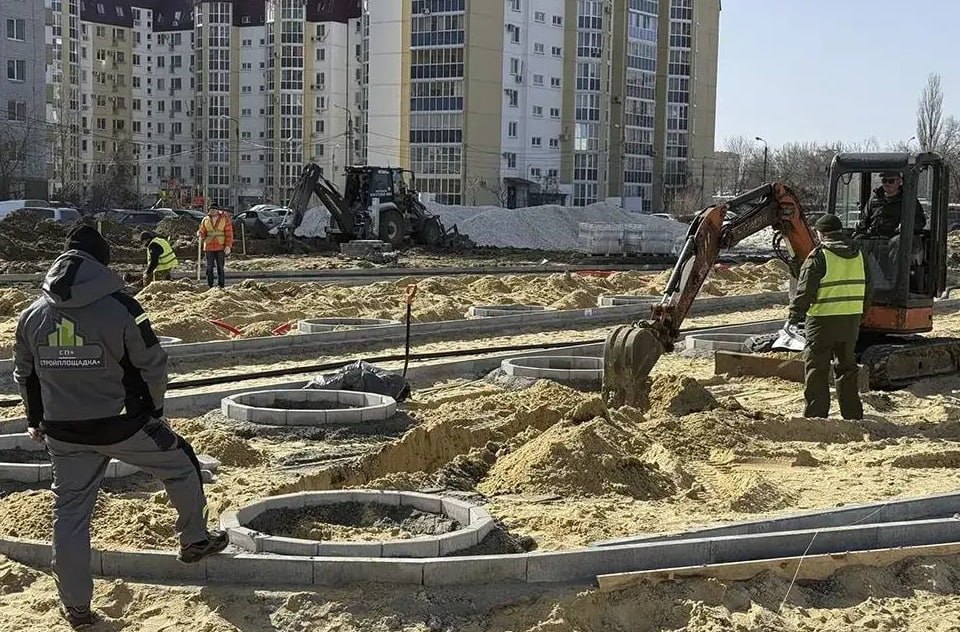 Подрядчик уже демонтировал старый тротуар, оборудовал котлованы для новых пешеходных дорожек и приступил к монтажу бордюров.