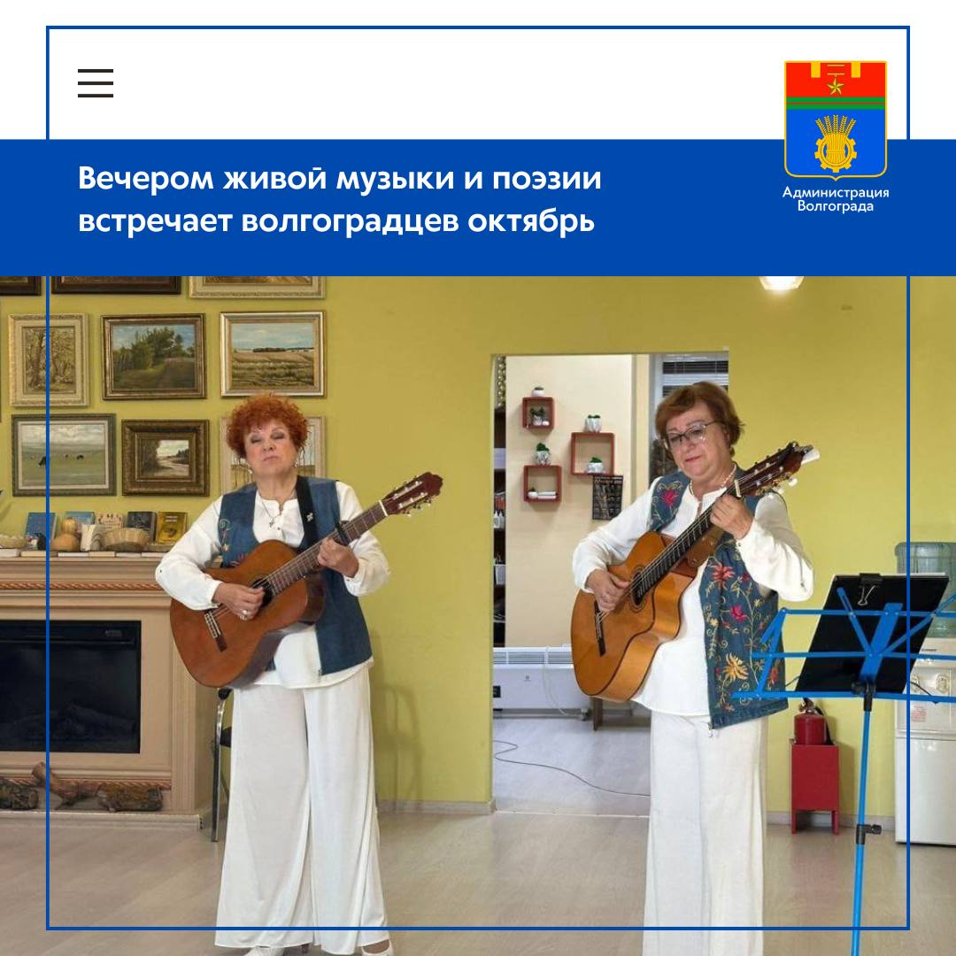 18 октября в 16:00 на сцене Дворца культуры профсоюзов пройдет концерт авторской песни "На одной волне". Волгоградцы смогут увидеть выступления артистов, принимавших непосредственное участие в городском музыкальном проекте «Синий троллейбус». На одной сцене встретятся музыкальные и поэтические дуэты.