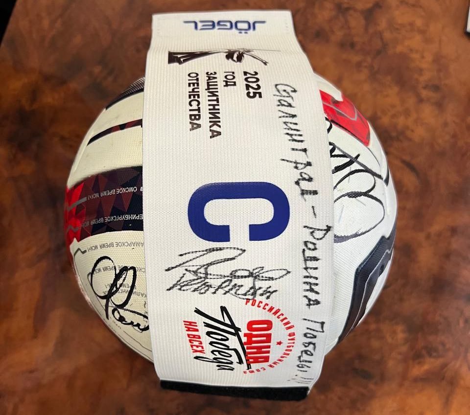 На ней автограф главного тренера Валерия Карпина и подпись «Сталинград – Родина Победы».