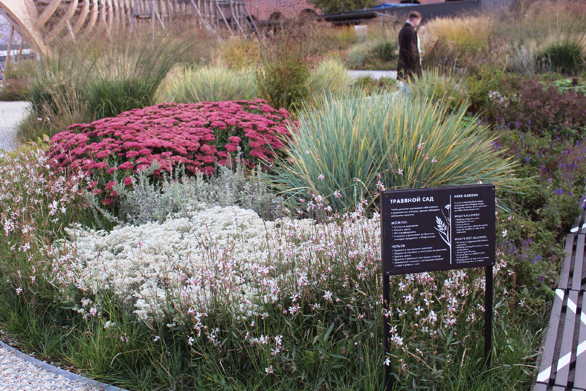 Особое внимание в этом сезоне привлекли такие яркие представители флоры, как очиток видный, или же очитник, сорт "Brilliant". Этот сорт, с его насыщенными розовыми оттенками, стал настоящим украшением сада трав. Неподалеку хорошо смотрится белый анафалис трехжилковый, который не только привлекает к себе внимание, но и обладает малой агрессивностью в распространении.