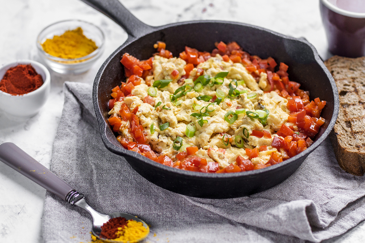 Ищете оригинальный способ начать свой день? Индийский скрэмбл «Джанси» с томатами и болгарским перцем добавит разнообразия в утреннее меню. Этот яркий и насыщенный вкусами завтрак готовится быстро и просто, а его секрет заключается в идеальном взбивании яиц и правильной термической обработке.