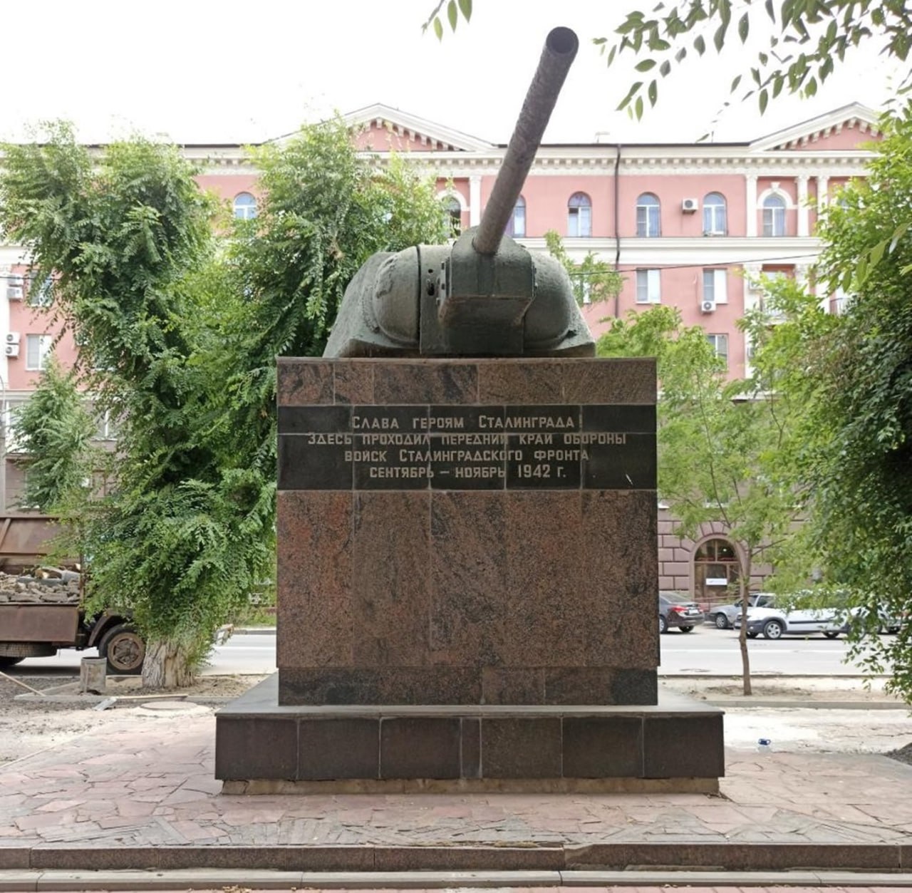 «Линия обороны Сталинграда» — памятник из 17 башен танков Т-34 на гранитных постаментах, установленных в точках максимального приближения немецко-фашистских войск к берегам Волги во время Сталинградской битвы. Пушки танков направлены в сторону противника, как знак обороны и готовности советских солдат.