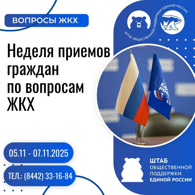 С 5 по 7 ноября «Единая Россия» проведет Неделю приемов граждан по вопросам жилищно-коммунального хозяйства на площадках партии в Волгоградской области.