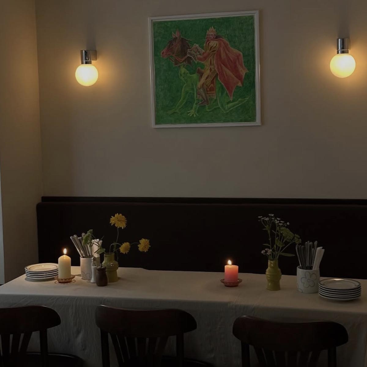 May представляет собой компактное и стильное заведение, рассчитанное всего на 20 человек. Здесь вас встречает живой стеллаж с винной картой — креативное решение, где вино представлено на трех полках: игристые, белые и красные наименования. Это не просто карта, а настоящая экспозиция, заставляющая гостей тщательно изучать ассортимент. Бистро активно исследует натуралку и нетрадиционные стили, предлагая вина из менее известных регионов и редкие образцы.