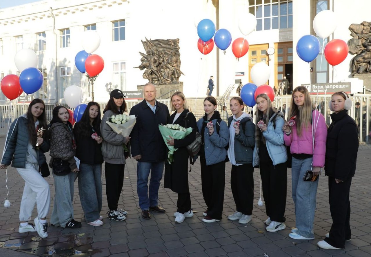Сегодня в Волгоград с бронзовыми медалями и Кубком вернулись девушки из команды «Аэлита», занявшие третье место на этапе Чемпионата мира по эстетической гимнастике AGG MAGGA CUP. На перроне вместе с родителями победительниц встречал директор спортшколы №14 «Зенит», депутат Волгоградской городской Думы Сергей Берендеев.