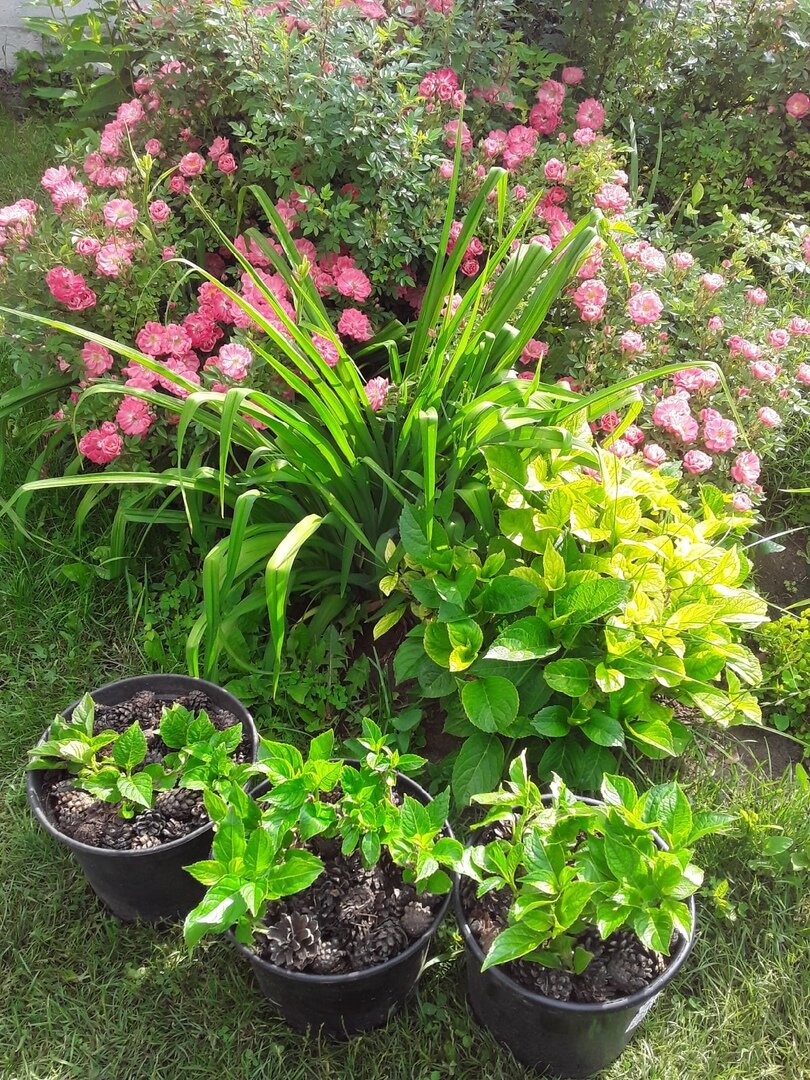 В этом году гортензии были пересажены в большие горшки, где их корневая система пока ещё чувствует себя комфортно. С помощью этой манипуляции удалось улучшить условия для роста. В конце лета растения выглядели довольно привлекательно, но приближающаяся зима ставит под вопрос их дальнейшую судьбу.
