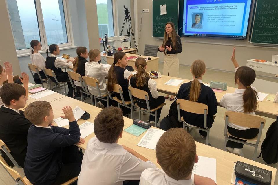 По данным областного комитета образования и науки, в новой школе №7, названной в честь композитора, шестиклассникам рассказали о ее военном детстве, интересных моментах из жизни и творчестве, а также о встречах с известными людьми. Ученики посмотрели видео о визите Александры Пахмутовой в Волгоград и ее юбилейном концерте в 2024 году. В школе также открыта фотовыставка, посвященная композитору. Александра Николаевна подарила школе сборник своих песен, который стал важным дополнением к урокам.
