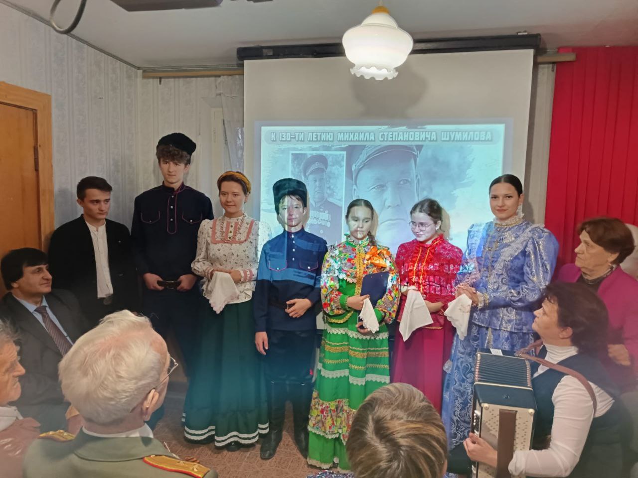 Участники митинга возложили цветы к памятнику генералу Шумилову, а затем в районном отделении КПРФ посмотрели посвященный военачальнику фильм. Ансамбль художественной самодеятельности «Лада» исполнил для участников встречи песни военных лет.