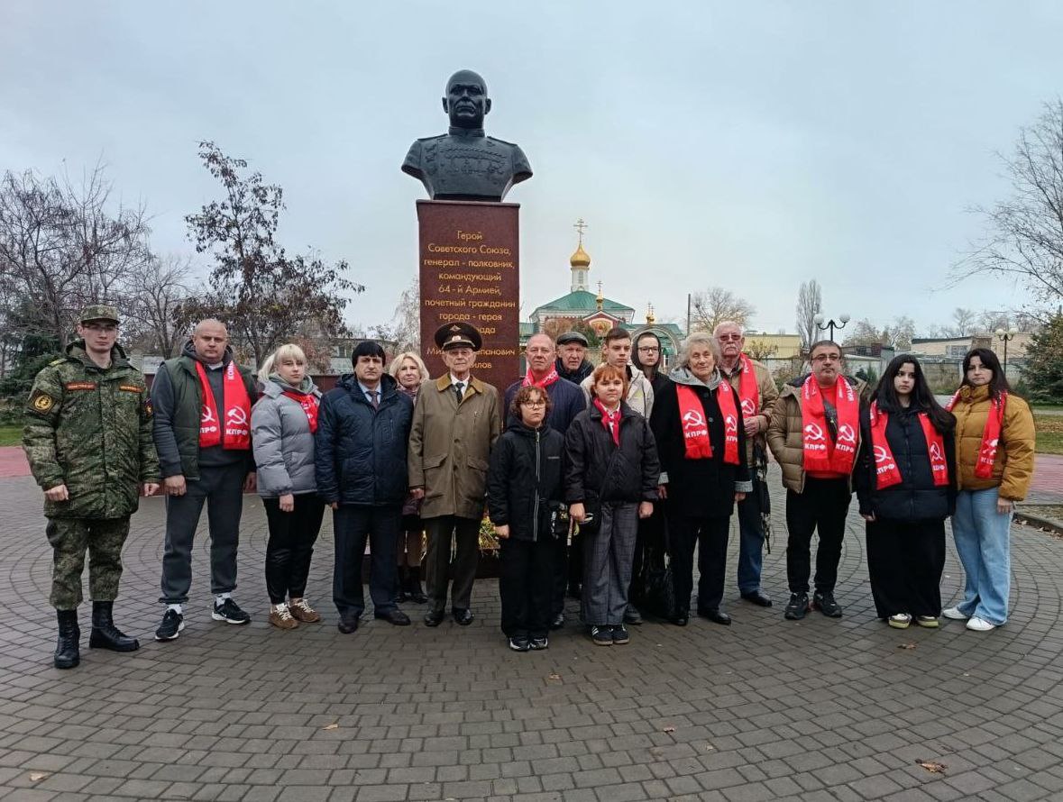 Митинг, посвященный 130-летию со дня рождения Героя Советского Союза, командующего 64-й Армией, генерал-полковника Михаила Шумилова, прошел в сквере Доблести и Славы Кировского района в преддверии 83-й годовщины контрнаступления советских войск под Сталинградом.