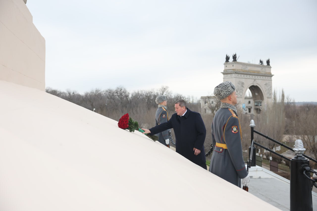 Губернатор, а также председатель Волгоградской облдумы, руководитель регионального совета ветеранов Александр Блошкин, представители ветеранского сообщества и местных органов власти возложили цветы к монументу «Соединение фронтов» в Пятиморске.