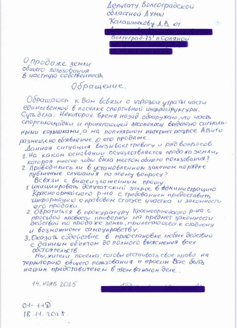 Буду держать этот вопрос на особом контроле. Вместе с жителями Соляного добьюсь законного и справедливого решения. Не позволим лишить молодежь спортивного будущего!