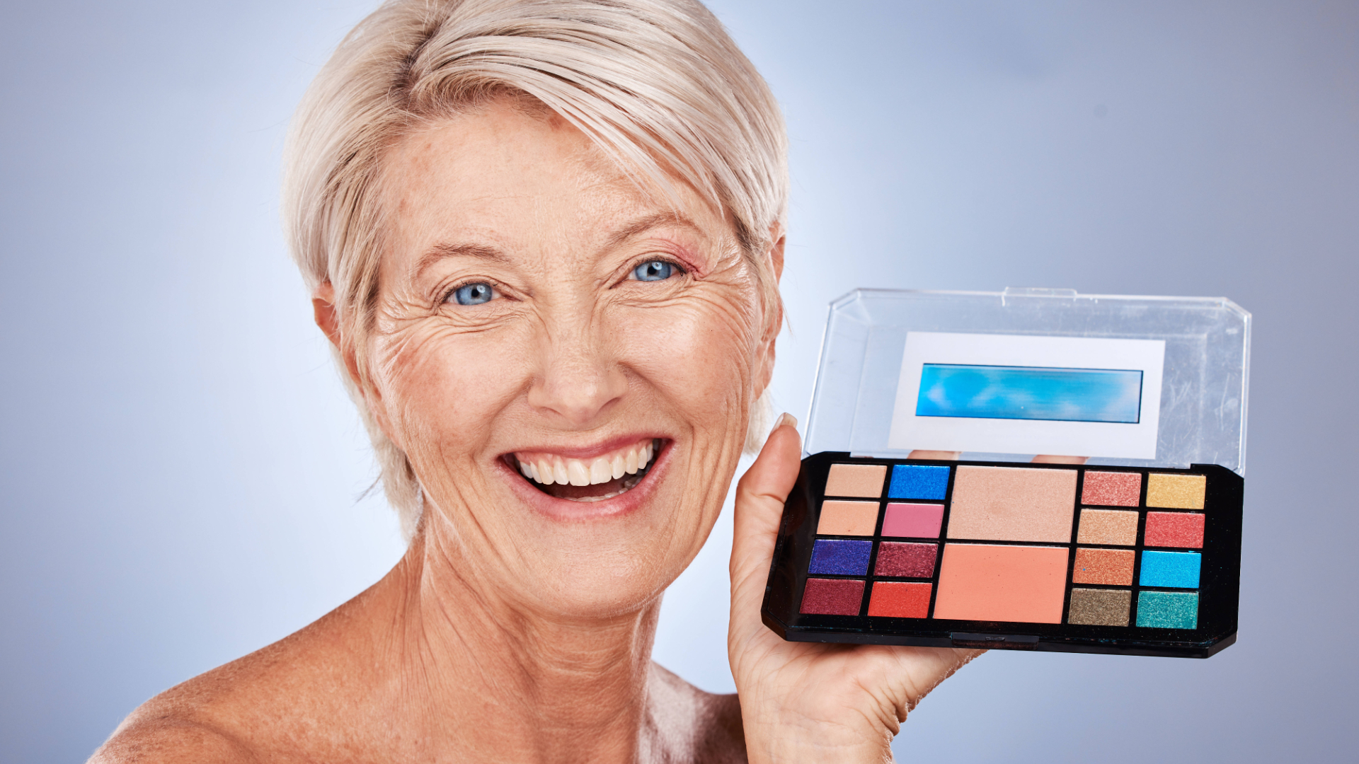 Женщинам 50+ стоит очень аккуратно использовать пудровые тени, блестки и средства с эффектом «металлик». Они интересно выглядят на презентациях визажистов, но подчеркивают все несовершенства кожи.