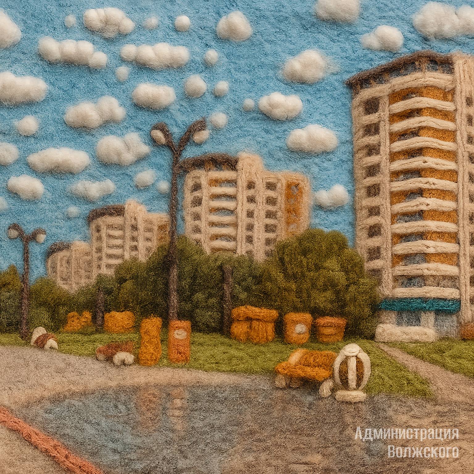 При помощи нейросети мы показали Волжский таким, каким его еще не видели — мягким и плюшевым, сшитым из добрых эмоций