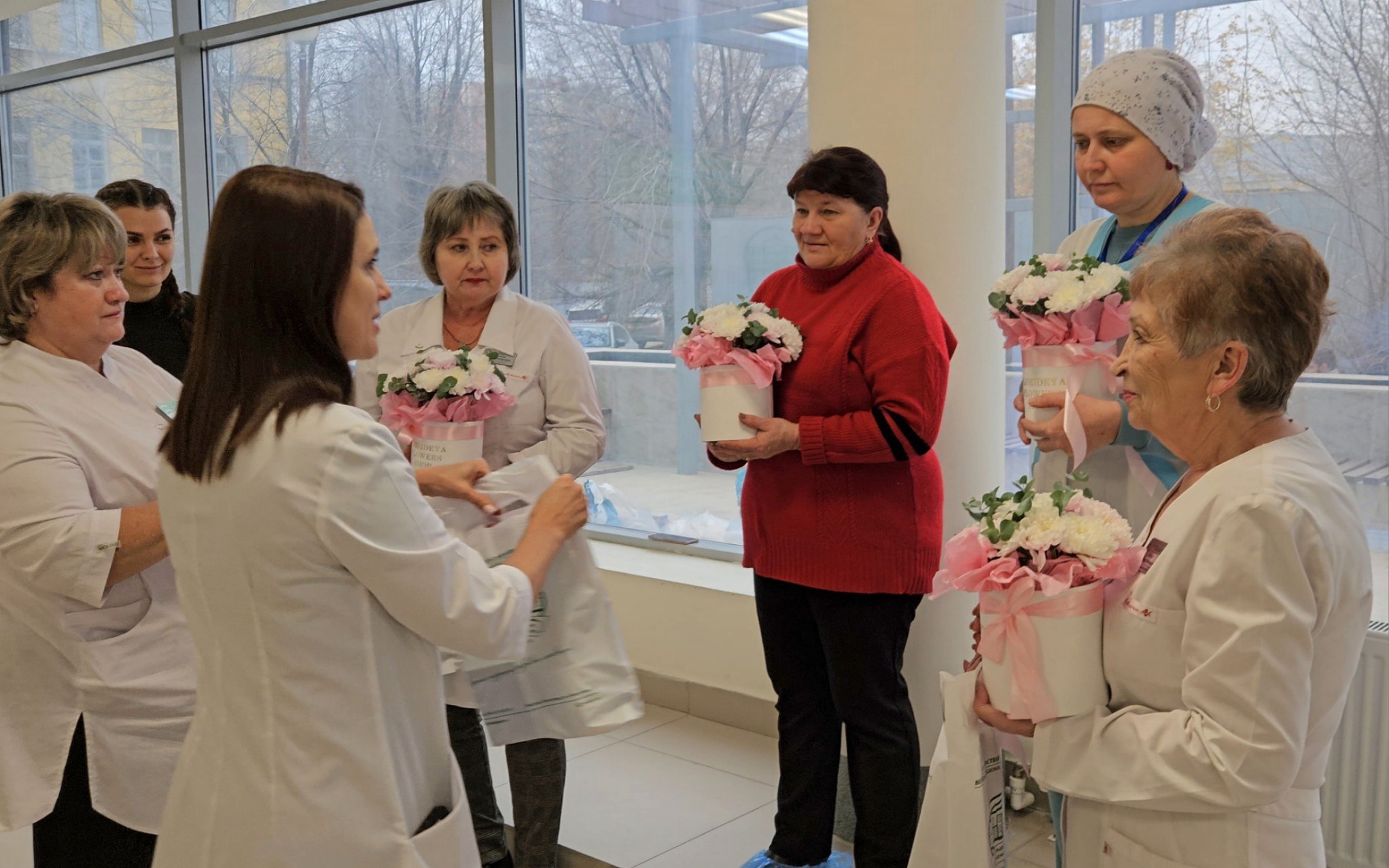 С радостью и гордостью мы поздравили сотрудниц областной больницы - матерей, чьи дети сейчас несут воинскую службу в зоне специальной военной операции.