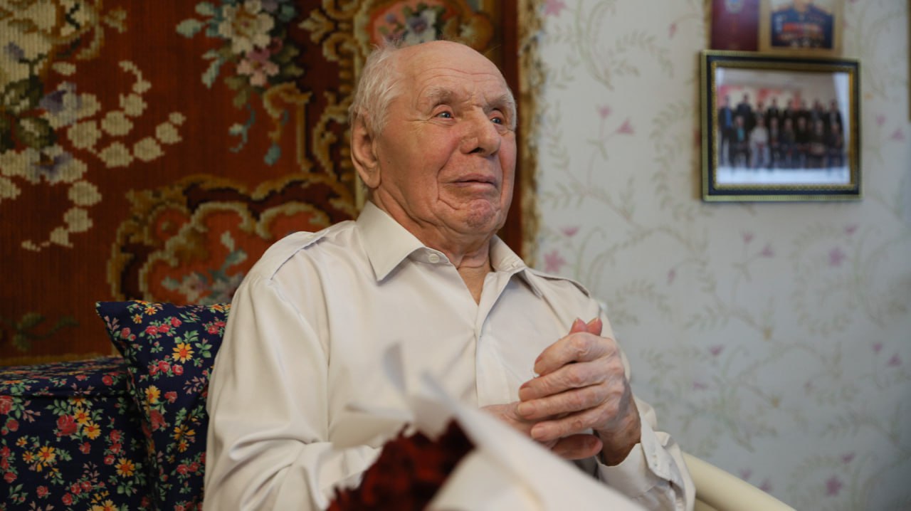Ветеран Великой Отечественной войны Виктор Шестель принимает поздравления со 100-летним юбилеем