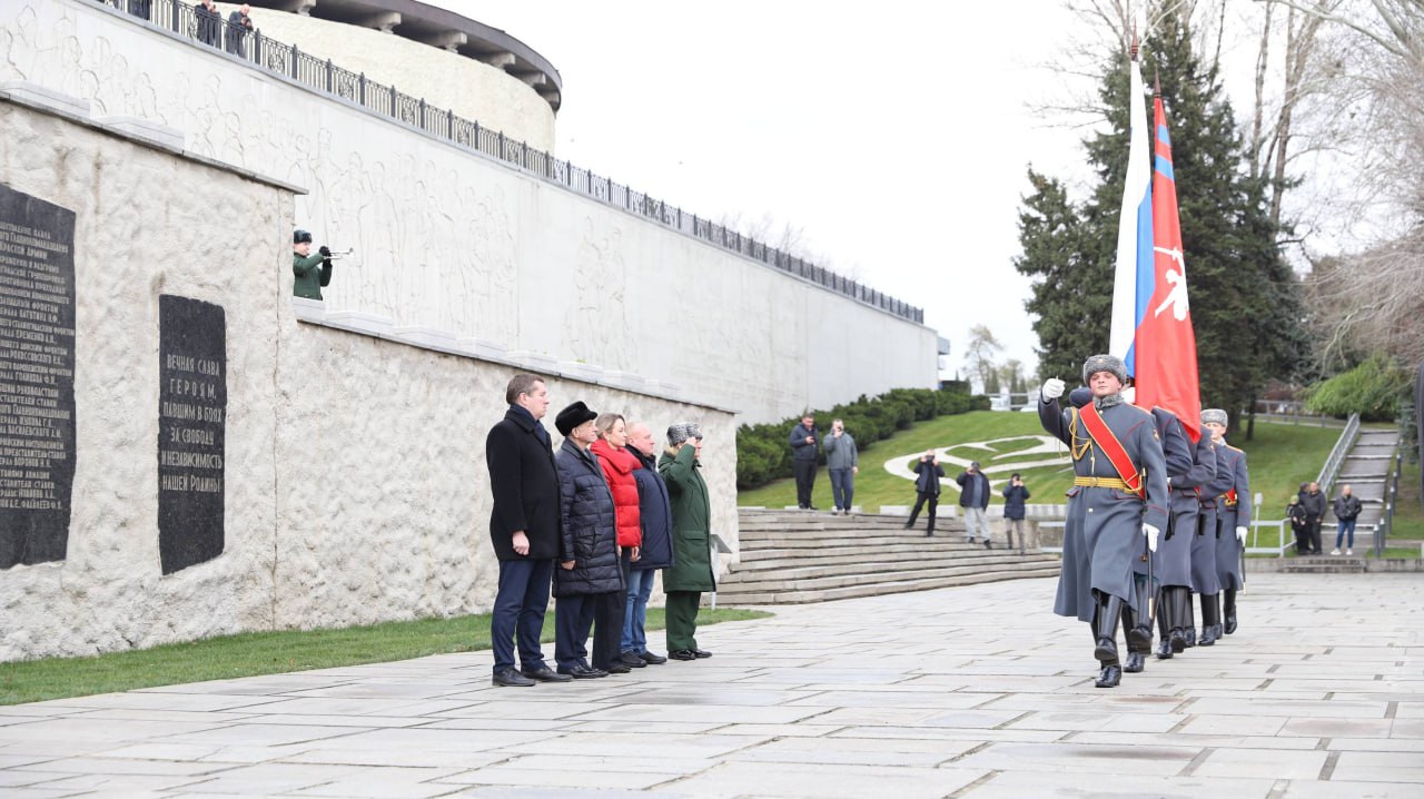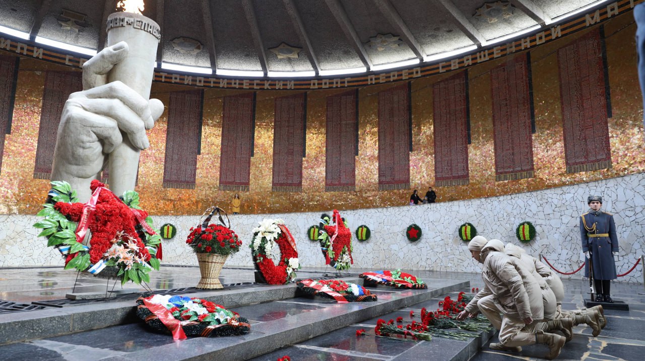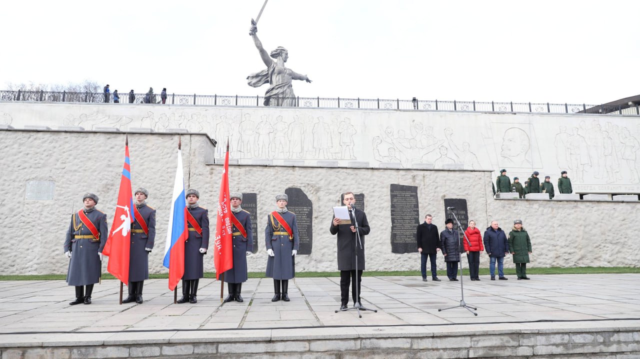 Копия Знамени Победы завершила сегодня на главной высоте России – Мамаевом кургане – свое торжественное шествие по стране в рамках заключительного этапа всероссийской патриотической акции «Марш Знамени Победы», которая проходит в честь 80-летия Великой Победы и Года защитника Отечества.