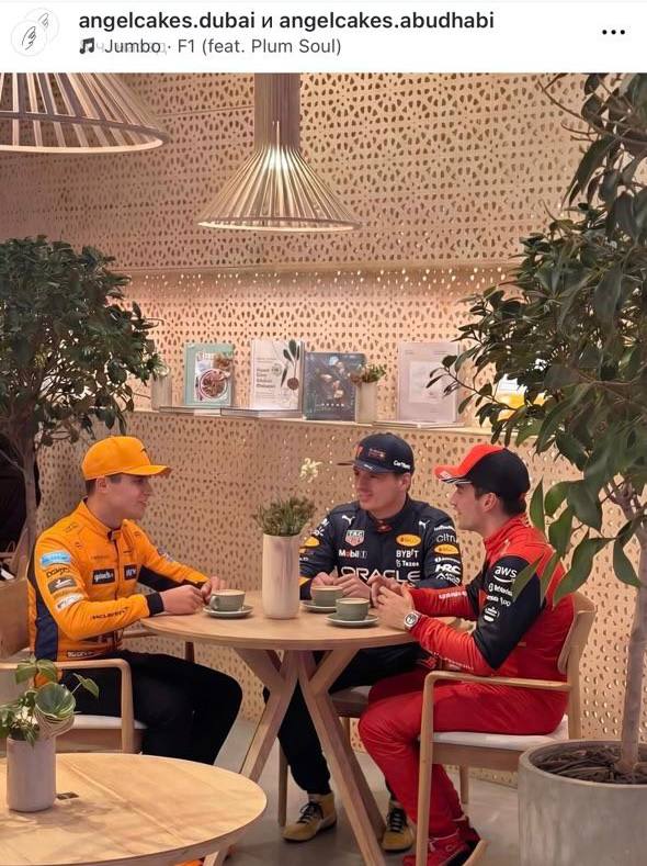 Ничего необычного, просто Ландо Норрис, Макс Ферстаппен и Шарль Леклер пьют кофе в кафе волгоградских предпринимателей Дмитрия и Алины Тютьковых перед гран-при Абу-Даби