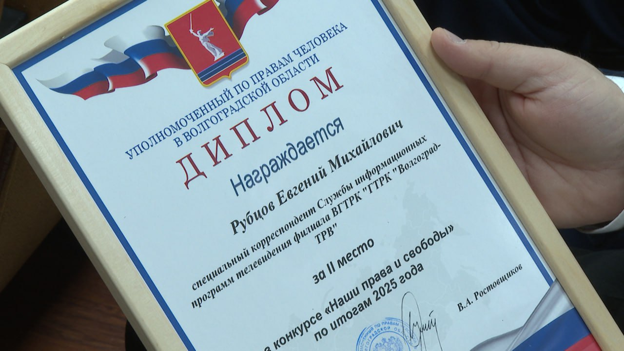 Специальный корреспондент волгоградских «Вестей» Евгений Рубцов занял второе место в конкурсе «Наши права и свободы» по итогам 2025 года