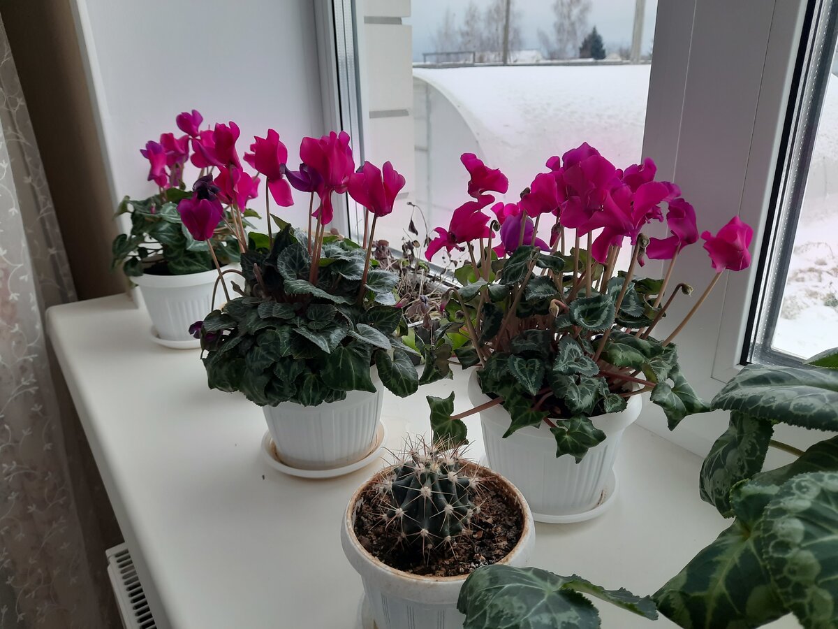 Цикламены, выращенные как из семян, так и из готовых саженцев, теперь радуют глаз цветоводов. Эти цветы особенно ярко оттеняют холодные зимние дни, своими распустившимися бутонами они словно пытаются призвать к жизни саму природу. Каждый цветок — это не просто красота, но и результат заботы, труда и терпения, что делает их цветение особенно ценным.