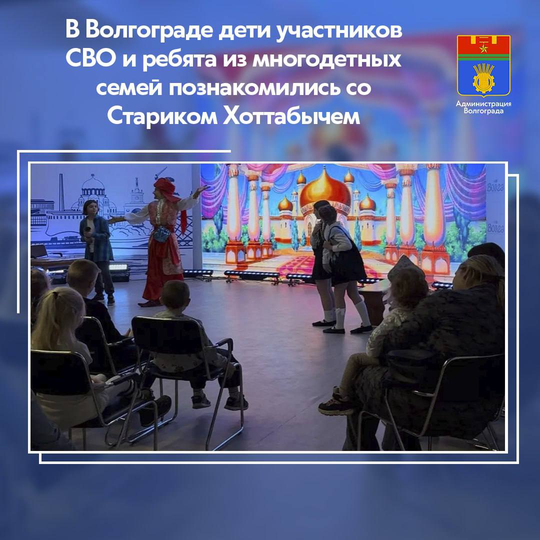 В Центре развития креативных индустрий «Волга» для 50 юных волгоградцев, чьи родители служат в зоне проведения специальной военной операции, а также детей из многодетных семей, семей, оказавшихся в трудной жизненной ситуации, ребят с ограниченными физическими возможностями показали спектакль «Старик Хоттабыч».