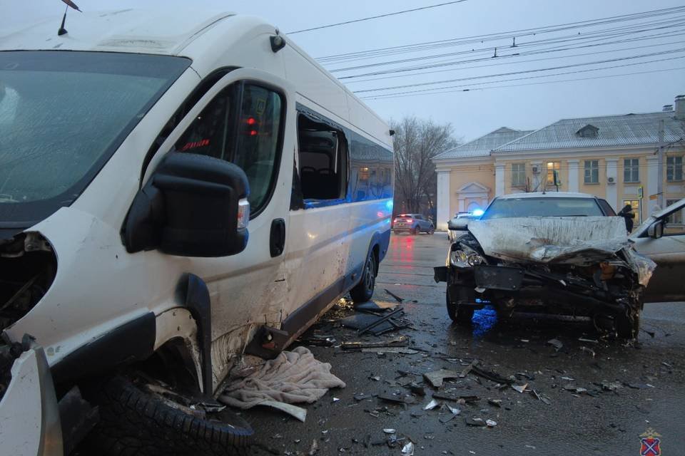 В Волгограде восемь человек пострадали в ДТП с участием легковушки и маршрутного такси. Авария произошла 22 декабря в 05.45 на пересечении проспекта Ленина и улицы Бакинской, сообщили "Городским вестям" в пресс-службе ГУ МВД по региону. Момент столкновения автомобилей попал на камеру наблюдения. Судя по опубликованному в Сети видео, ехавшая по Первой Продольной магистрали Lada Priora проскочила на красный сигнал светофора и влетела на скорости в микроавтобус, который выезжал на проспект.