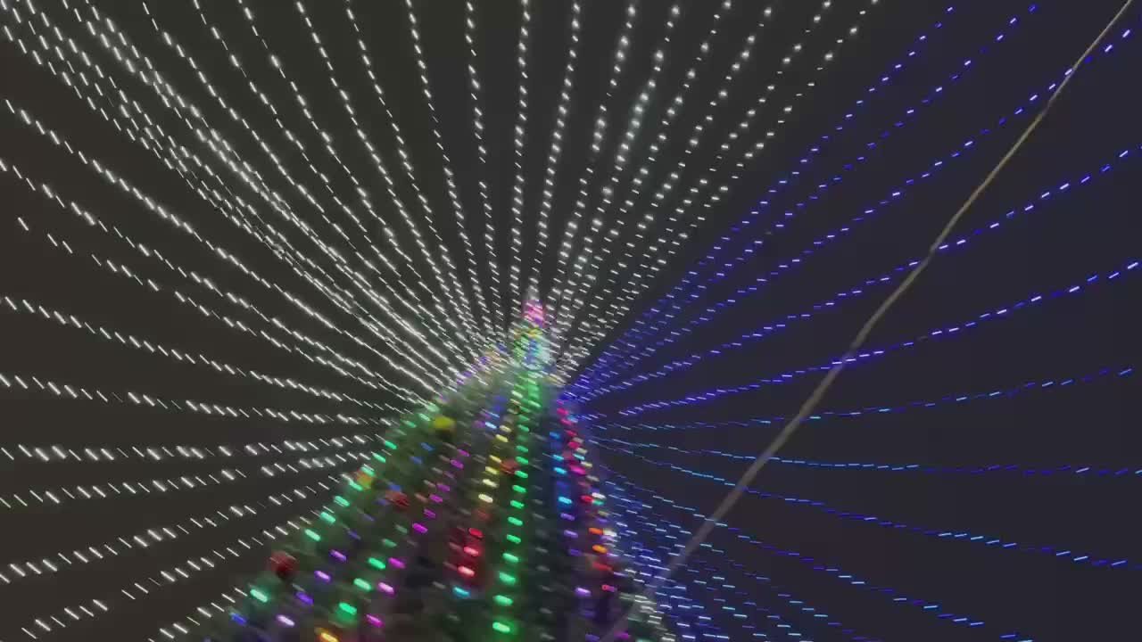 Волжский окутало новогоднее волшебство. На центральной площади имени Ленина зажглась масштабная световая инсталляция — гирлянда «Звездное небо».