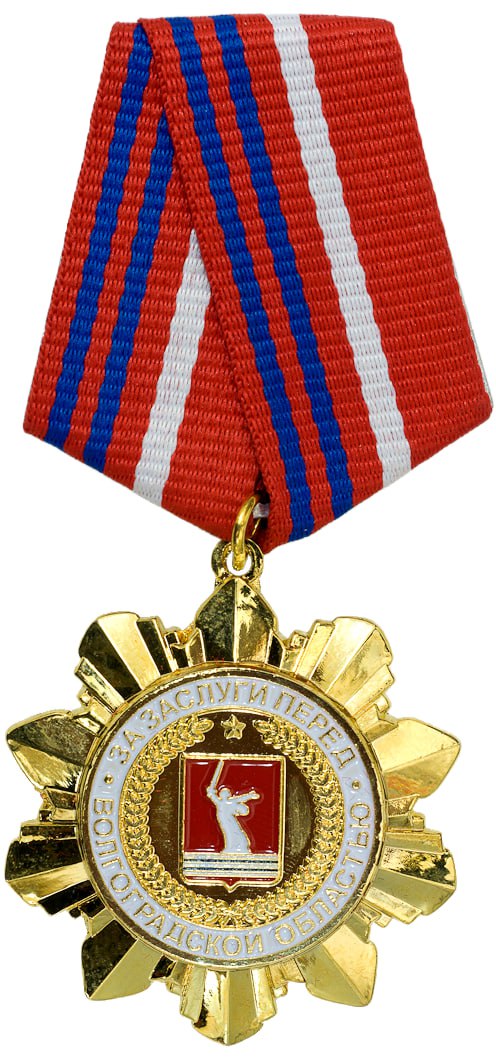 В 2012 году в целях поощрения граждан за значительный вклад в социально-экономическое развитие Волгоградской области, большие заслуги и достижения в государственной, производственной, научно-исследовательской, социальной, культурной, общественной и благотворительной деятельности постановлением Губернатора Волгоградской области № 1371 учреждена медаль «За заслуги перед Волгоградской областью».
