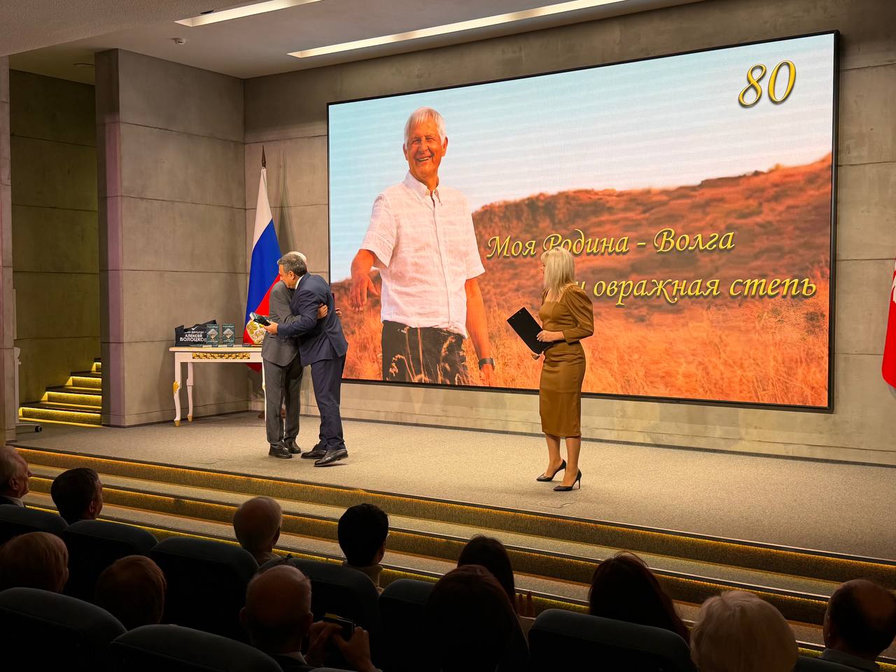 Заместитель председателя регпарламента Руслан Шарифов вручил Владимиру Овчинцеву почетную грамоту Волгоградской областной Думы в честь знаменательного юбилея с благодарностью за большой творческий вклад в развитие Волгоградской области и пожеланиями здоровья, благополучия, долгих лет жизни.