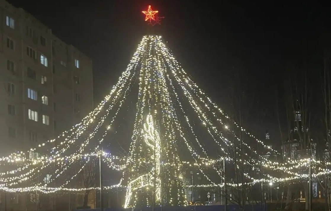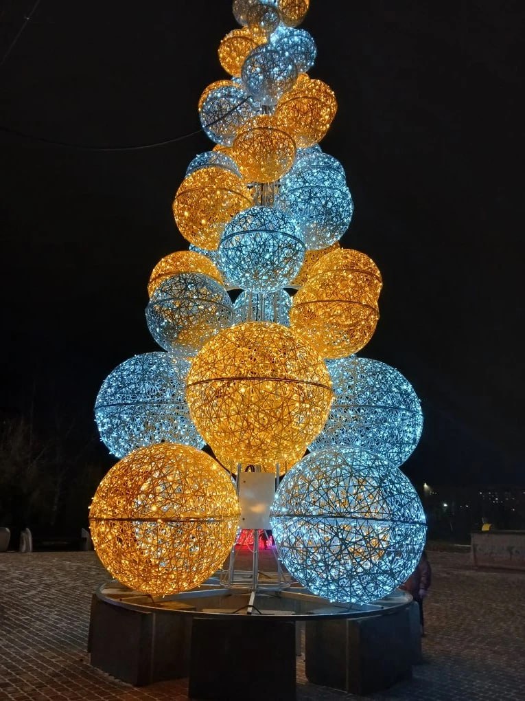 В Суровикино – елка «Хамелеон» с 30 световыми режимами, в Краснослободске – живая экоель с игрушками из пластика, в Волжском – футуристическая елка «Сияющая мечта», в Волгограде у собора Казанской иконы Божией Матери – рождественская елка «Свет веры и праздника» с пятиконечной звездой, контурной иллюминацией в виде оленя и шатром.