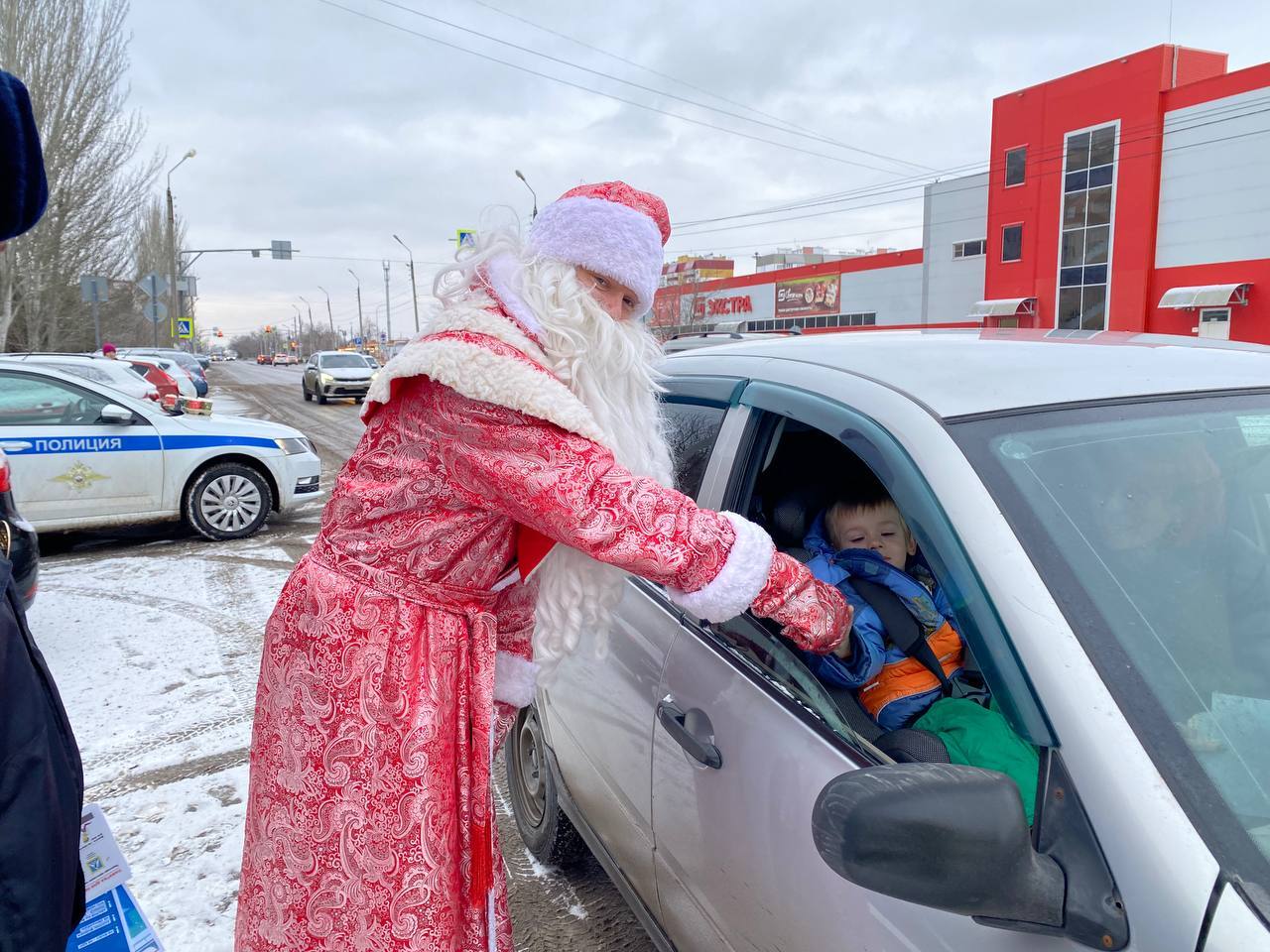 Новогодний патруль добра в Волжском: Дед Мороз, ГАИ и общественники — за безопасность на дорогах!