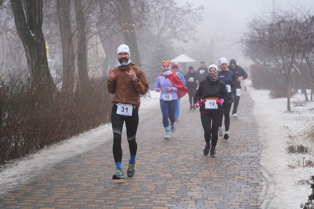 Сегодня в Центральном парке 150 спортсменов, многие из которых были в костюмах Дедов Морозов и Снегурочек, приняли участие в традиционном праздничном забеге. Определили 28 победителей на дистанциях 1 и 5 км, а самый яркий костюм оказался у бегуна в папахе. Все финишеры получили красивые медали-снежинки.